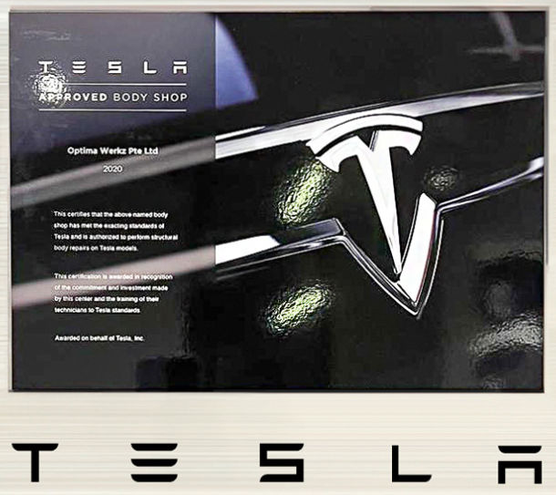 Optima Werkz Pte Ltd holds the distinction of being the first Tesla-Approved Collision Centre in Singapore, a recognition that reflects unmatched expertise and commitment to
